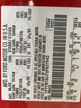 { Choice of lots: 60 } 2002 Ford Ranger VIN: 1FTYR10U72PB57942 Odometer States: 36060 Color: Red Transmission: Automatic, Engine Type: 3.0l Suspension: 2wd Fuel Type: G, Location Odessa, TX