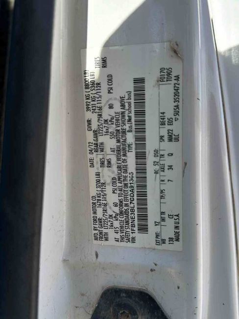 { Choice of lots: 647, 649 } 2012 FORD E-350 EXPRESS VAN VIN/SN: 1FBNE3BL7CDA91365, ENGINE:5.4L GAS, ODOMETER READS 173819 MILES, TRANSMISSION:AUTOMATIC, ENGINE STARTS:YES, STARTS. 2WD. CLOTH INTERIOR. CARPET FLOORS. PL. PW. INTERIOR ROLL BARS. BRUSH GUARD.